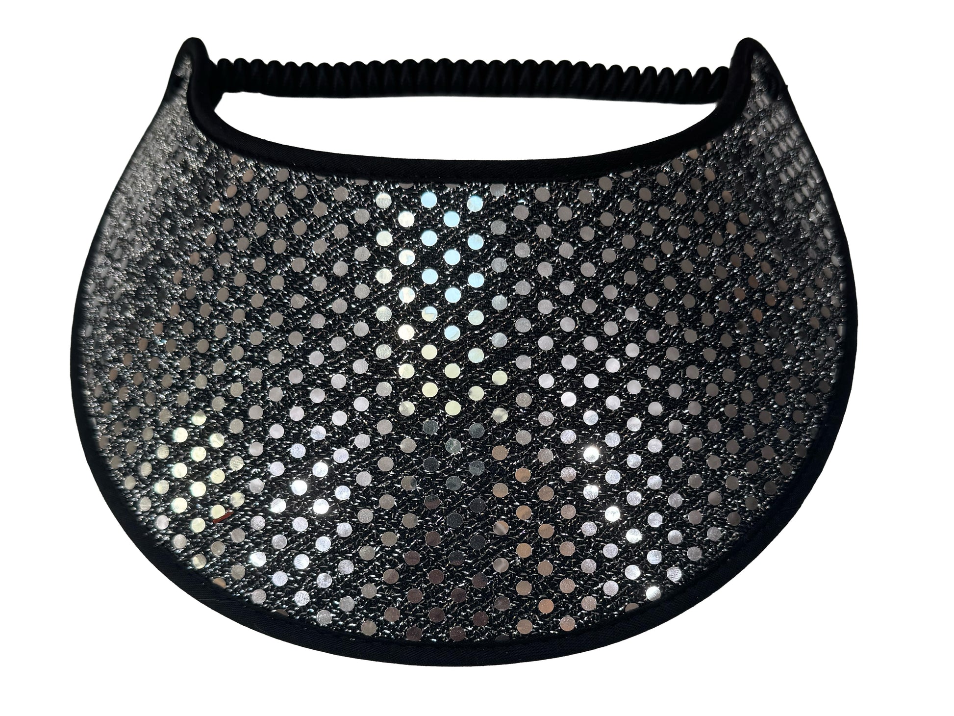 J130w Silver on Black Confetti Glitz Wide Brim Sun Visor