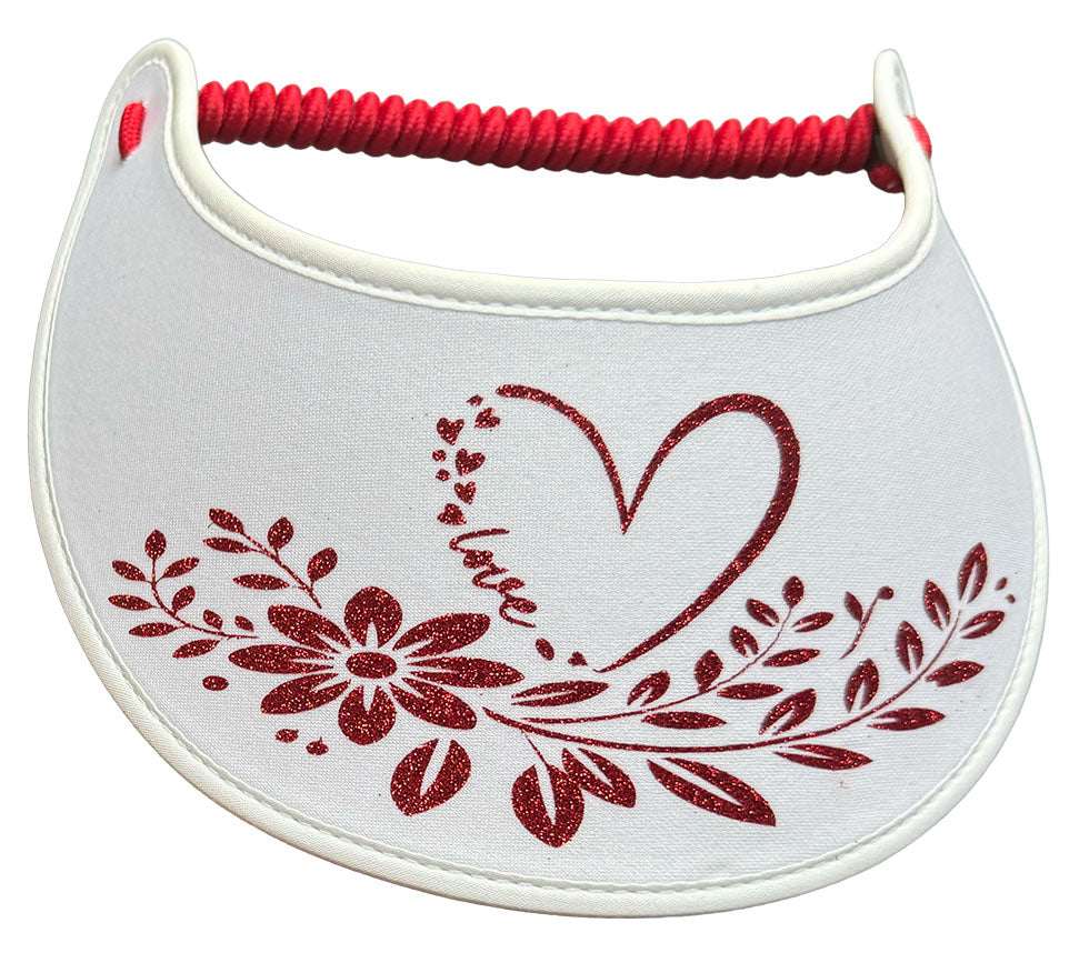 Valentine Sun Visor with Flowers and Heart in Red Glitz